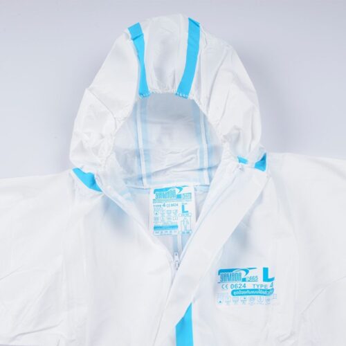 ชุด Coverall Category Ⅲ (TYPE 4B) สำหรับงานที่เกี่ยวกับอันตรายทางชีวภาพและสารติดเชื้อ