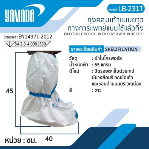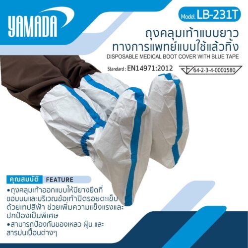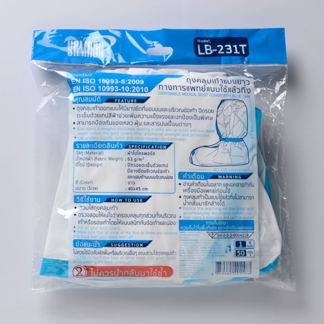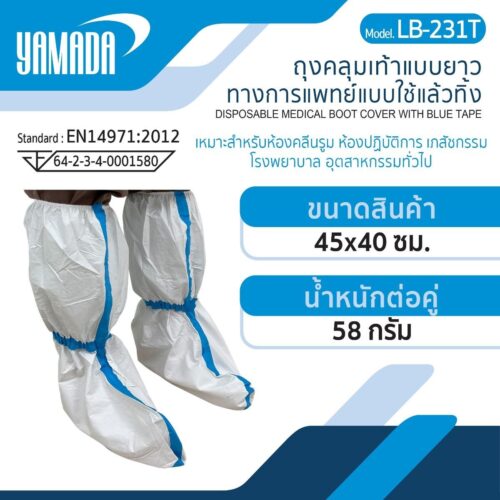 ถุงคลุมเท้าแบบยาว (เทปสีฟ้า) รุ่น LB-231T (10คู่/แพ็ค)