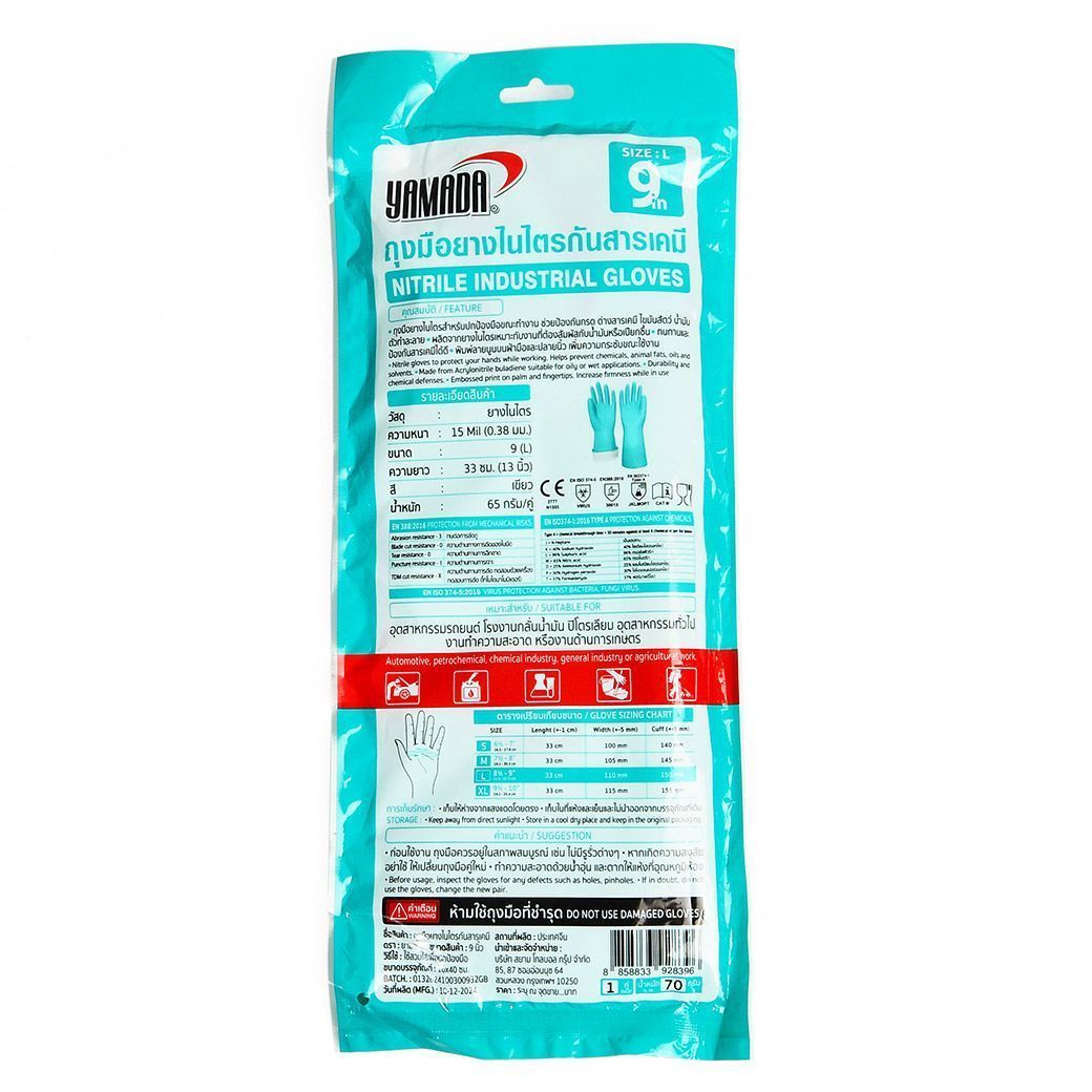 ถุงมือยางไนไตรกันสารเคมี 15 มิล ไซส์ L YAMADA