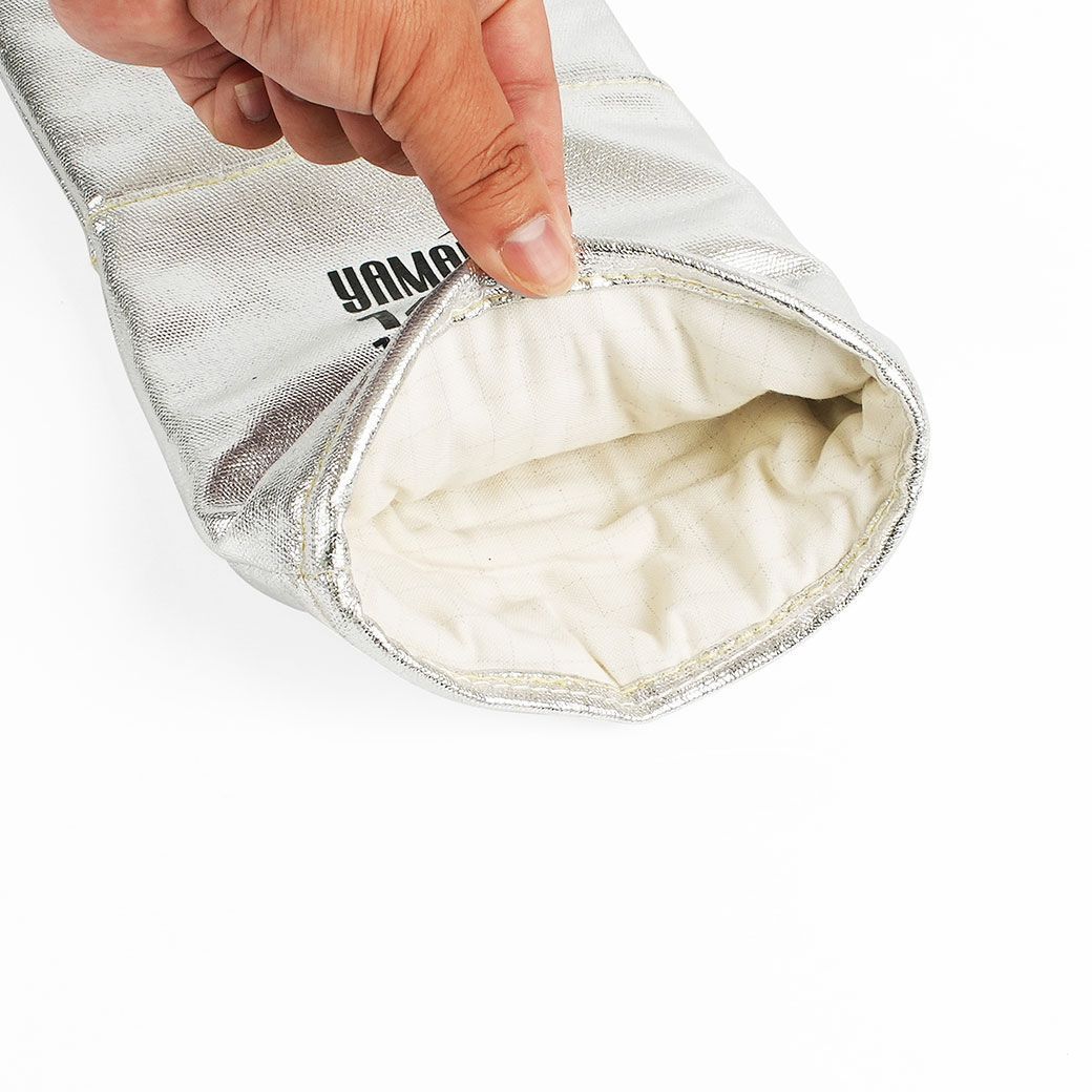 ทนรังสีความร้อนได้มากถึง 500 องศา ทำจากวัสดุฟอยล์เคลือบอลูมิไนซ์ เย็บด้วยด้ายกันไฟเคฟลาร์แน่นหนา ทนต่อความร้อนและระบายอากาศได้ดี