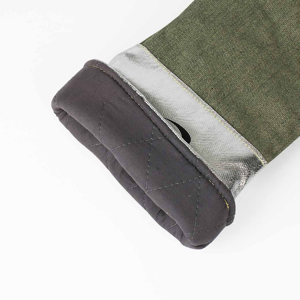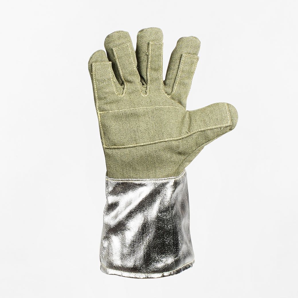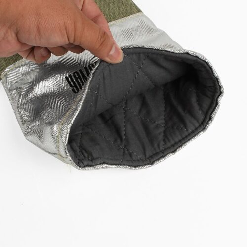 - ถุงมือกันความร้อนเคลือบอะลูมิไนซ์ ผลิตจากฟอยล์เคลือบอะลูมิไนซ์และซับในผ้าฝ้าย ปลอดสารพิษและไม่เป็นอันตราย