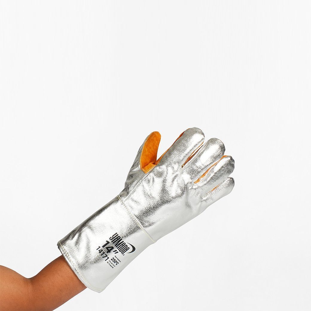 ทนความร้อนได้มากถึง 250 องศา ทำจากวัสดุฟอยล์เคลือบอลูมิไนซ์ เสริมแผ่นหนังบริเวณฝ่ามือ ทนต่อความร้อน การเสียดสีและระบายอากาศได้ดี