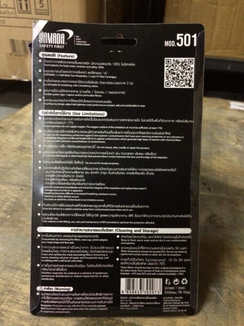 หน้ากากครึ่งหน้า แบบไส้กรองเดี่ยว รุ่น 501 YAMADA