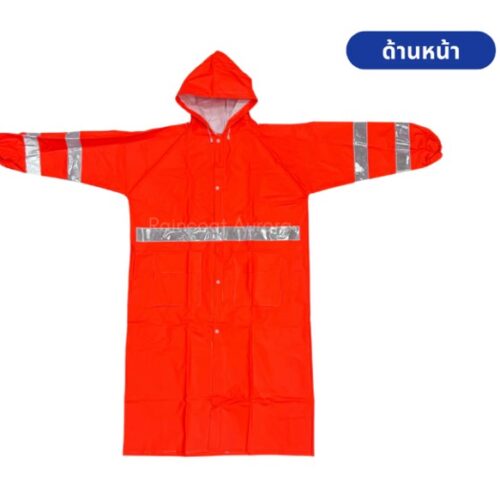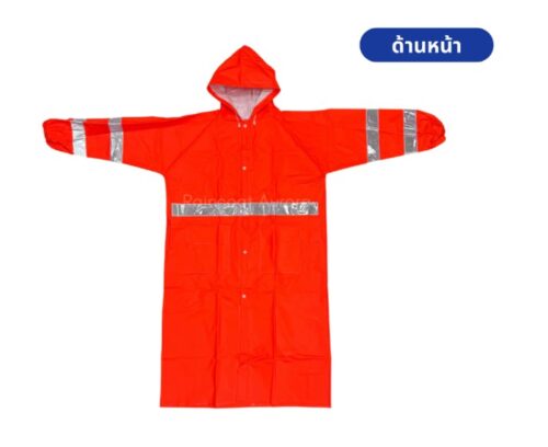 เสื้อกันฝน โค้ทคลุมยาว ติดแถบสะท้อน 6 จุด ผ้าสองชั้น จั๊มพ์แขน มีทั้งซิปและกระดุม RG015/6